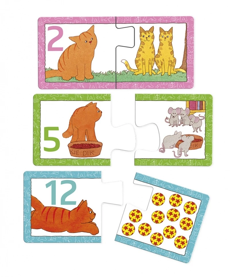Met deze kleine puzzels kunnen cijfers en voorwerpen worden herkend en je kunt ze benoemen In totaal zijn het 12 puzzeltjes met elk 2 stukjes.