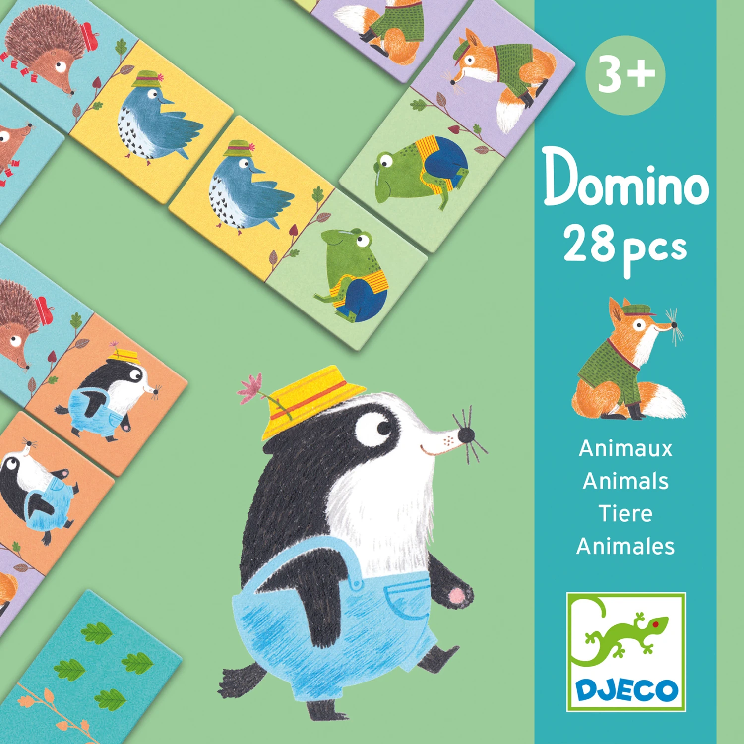 Domino Farm is een spel van beeldherkenning en getallenbenadering met dierenthema. Twee speelkanten: één kant met illustraties, één kant met sterren.