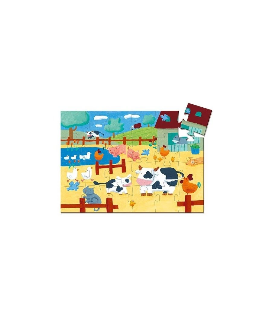 Wil je weten welke dieren er allemaal op de boerderij zijn? Als je deze kartonnen puzzel koeien op de boerderij van Djeco maakt dan krijg je het antwoord. De 24 puzzelstukken worden opgeborgen in een mooie stevige silhouet doos in de vorm van een koe. Ges