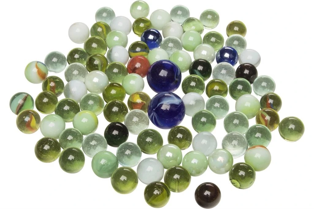 Deze glazen knikkerset van Goki bestaat uit 86 knikkers met een diameter van 1.6 cm en 2 grotere knikkers van 2.5 cm. De knikkers worden in een opbergnetje geleverd. De kleuren kunnen verschillen van de foto.