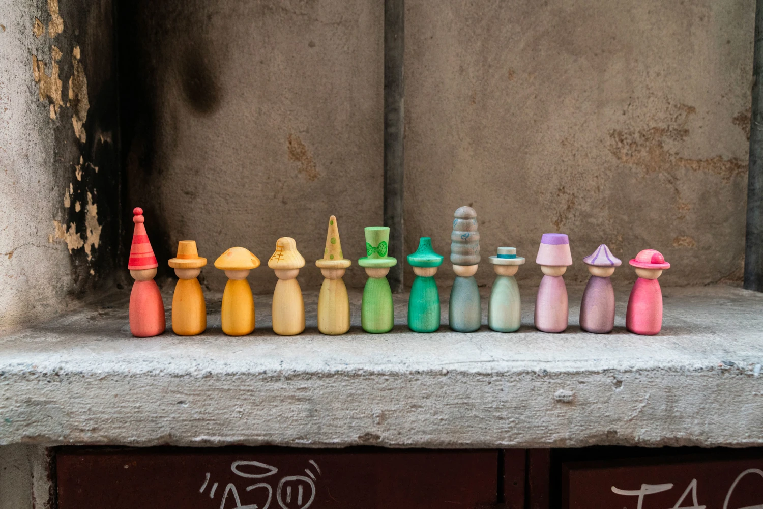 Deze set van Grapat bevat 12 Nins met de hand gekleurd in 12 kenmerkende kleuren van de regenboog met verwisselbare hoeden en lichamen om nog meer combinaties van kleurrijke mogelijkheden te bieden voor elke spelactiviteit met een open einde.