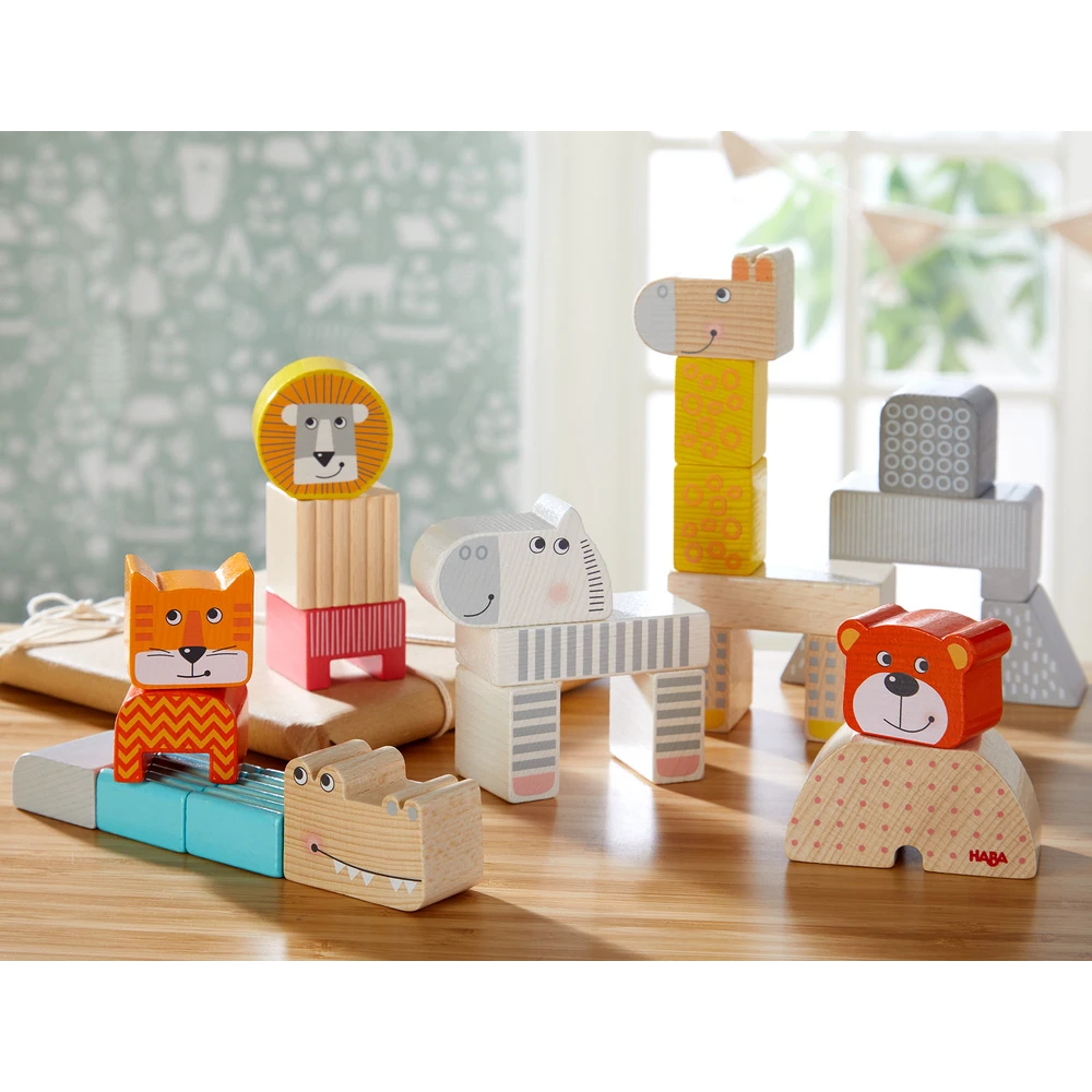 De giraf, leeuw, zebra en andere dieren staan klaar voor de grote parade en kleine bouwers kunnen hen helpen! Met de bouwstenen in verschillende kleuren en patronen kunnen de dieren telkens weer anders in elkaar worden gezet –