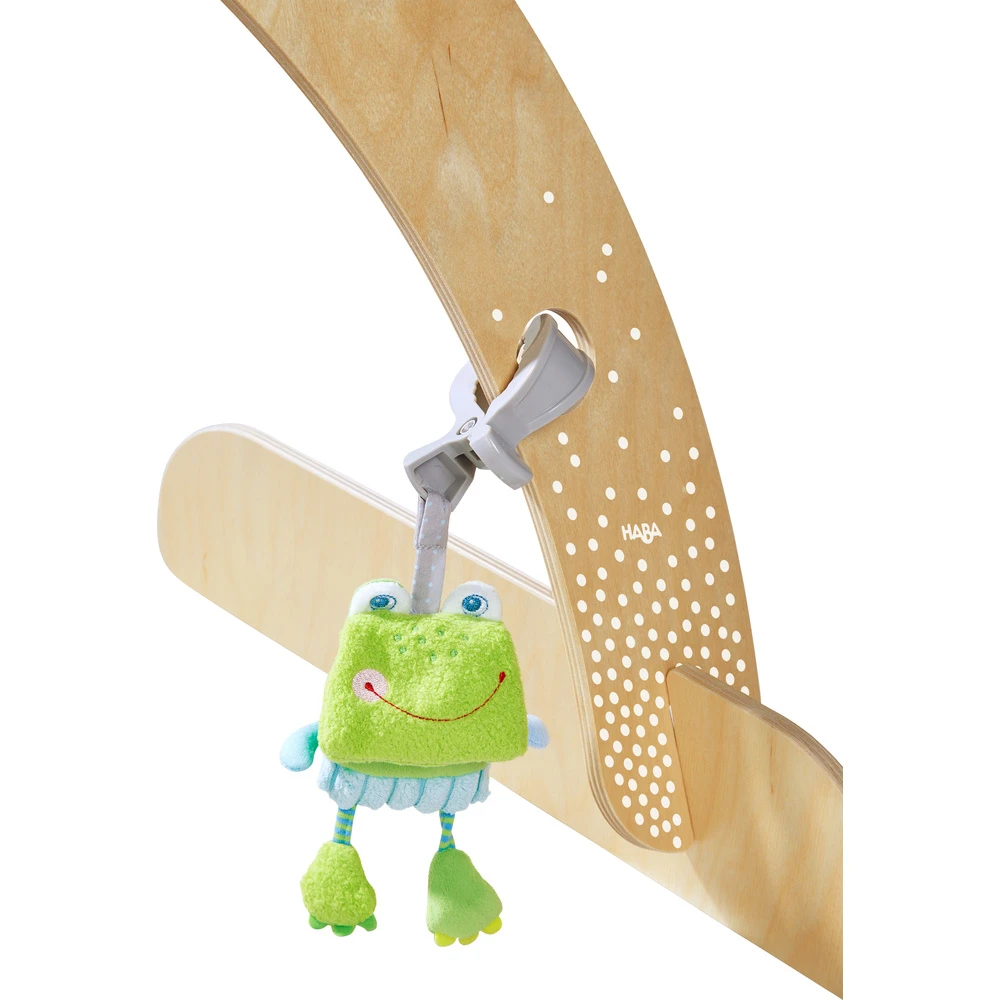 Hij biedt voldoende ruimte voor de eenvoudige bevestiging van allerlei speelgoed met een lus, klem, ring enz. De baby kan dan op de rug liggend naar de rammelaars of andere hangelementen grijpen.