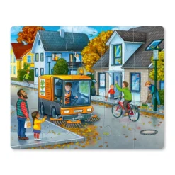 10 appels, 10 peren, 10 paar kersen, 10 pruimen, 4 fruitmanden, 1 ravenpuzzel (9 stukken), 1 dobbelsteen met kleuren en symbolen, 1 spelbord, 1 handleiding