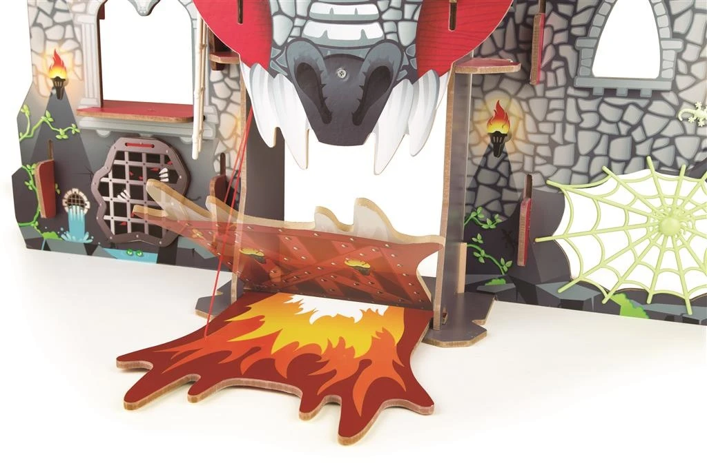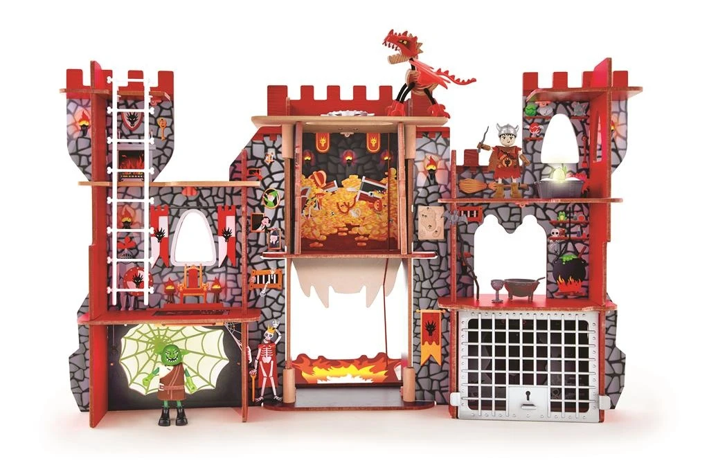 Met dit complete kasteel van Hape kun je je verplaatsen in de tijd van de Vikingen. Creëer je eigen verhalen en gebruik de meegeleverde speelfiguren. Op de rug van de draak kan een Viking zitten.