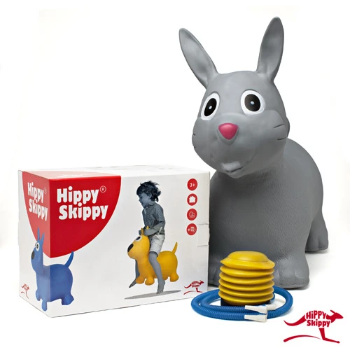 De originele Hippy Skippy is de meest stabiele vernieuwde skippybal in de vorm van een dier. Dit is het konijn in een grijze kleur. Naast het huppen kunnen de kinderen ook leren: vasthouden, balanceren en het samenspel van ogen en handen ontdekken. Geschi