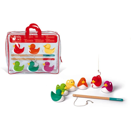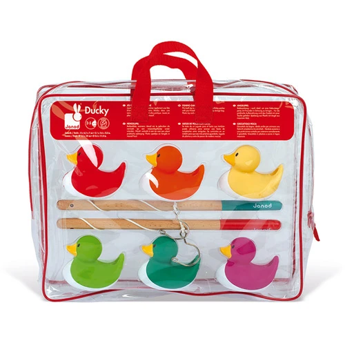 Een leuke set om badeendjes mee te gaan hengelen. De set bestaat uit 6 eendjes en 2 hengels. De set van Janod wordt geleverd in een handige opbergtas zodat je ze gemakkelijk mee kunt nemen op vakantie.