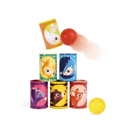 Gooi alle blikken in zo weinig mogelijk beurten om, dat is het doel van die spel van Janod. De 6 blikken zijn van metaal en de ballen zijn van schuim. Geschikt voor kinderen tussen 3 – 8 jaar.