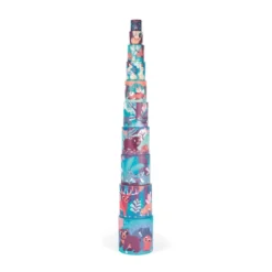 Deze stapeltoren van Janod bestaat uit 10 kartonnen delen. Op het bovenste blok is een afbeelding van een vos geschilderd. De toren is goed voor de motoriek en doordat op de bovenkant van elke element een cijfer staat leren de kinderen ook tot 10 tellen.