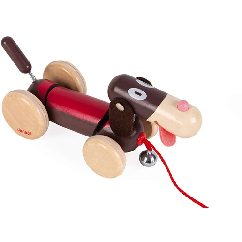 Dit trekfiguur hond van Janod is gemaakt van FSC hout. Als je met de hond gaat lopen dan bewegen er verschillende delen, zoals de staart die heen en weer schudt of het belletje rond zijn hals wat gaat klingelen.
