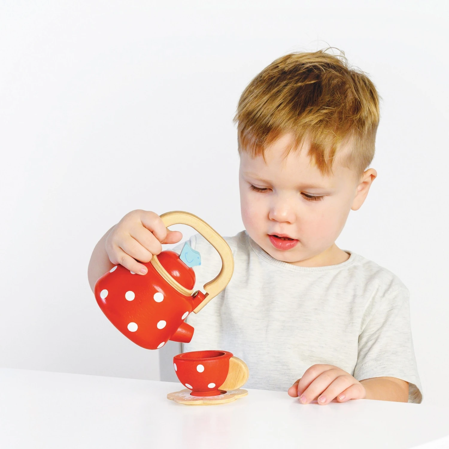 Deze houten theepot van Le Toy Van is een mooie aanvulling op elk theeservies waarmee het rollenspel waterkoken kan worden gespeeld.