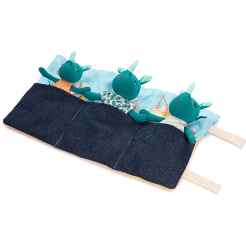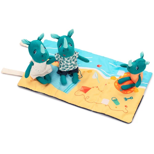 Wat een schattig neushoorngezin deze familie van Marius van Lilliputiens. Het matje en de figuurtjes kunnen gemakkelijk overal mee naar toe genomen worden. Zo kan de kleine telkens weer nieuwe avonturen beleven met deze speelset. De kleertjes van de poppe
