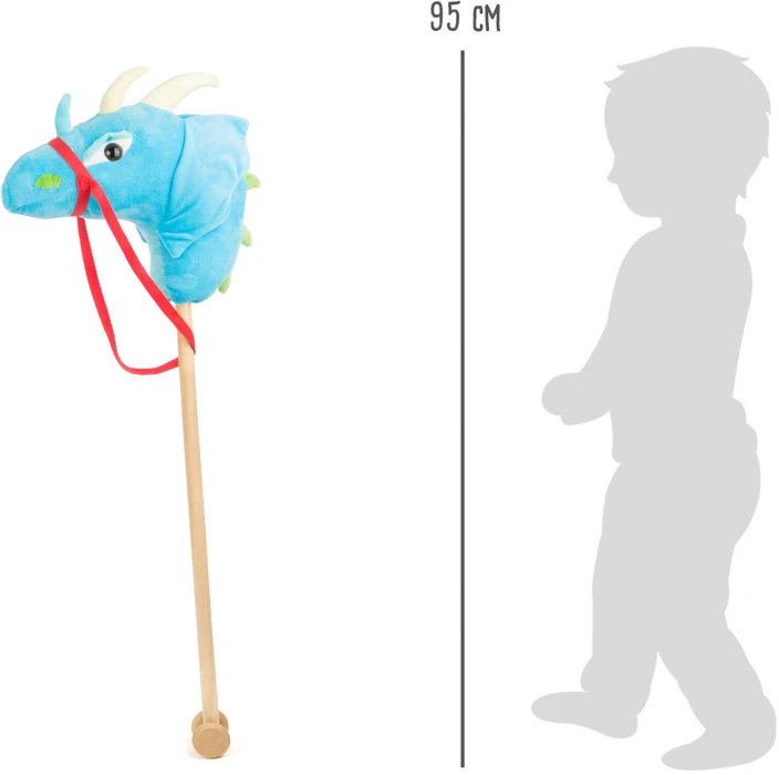 Dit leuke stokpaardje is gemaakt van zachte stof. Als je met deze blauwe draak gaat lopen dan val je echt op!