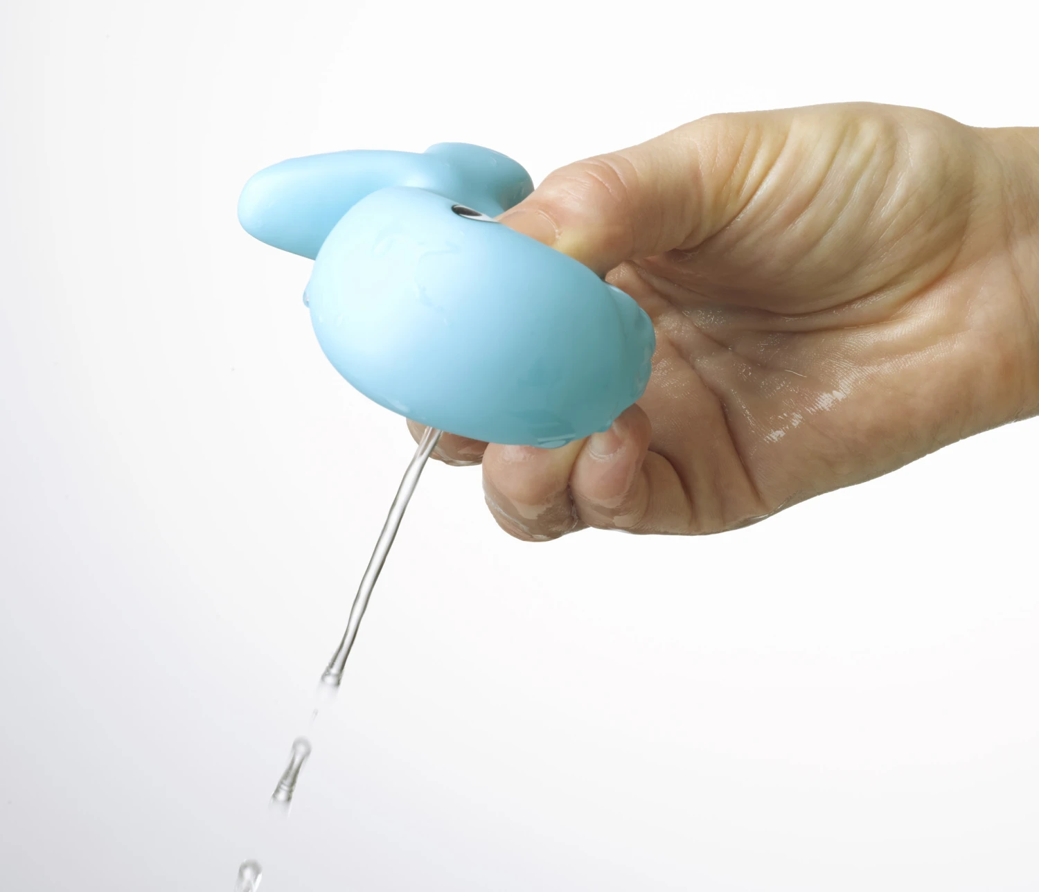4 badspeeltje met zuignap: de inktvis, krab, walvis en zon kunnen als waterspuiters worden gebruikt. Deze badspeeltjes kun je makkelijk aan de badkuip bevestigen.