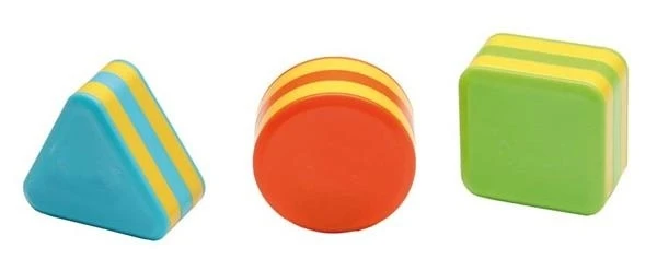 De bouwsteenrammelaar, met zijn verschillende geometrische basisvormen, is ideaal voor het ontwikkelen van de tastzin. Wordt willekeurig en per stuk geleverd.